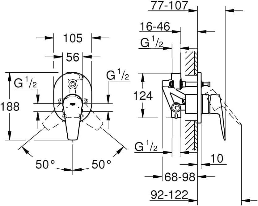 - Type: Wall-mounted bath/shower mixer