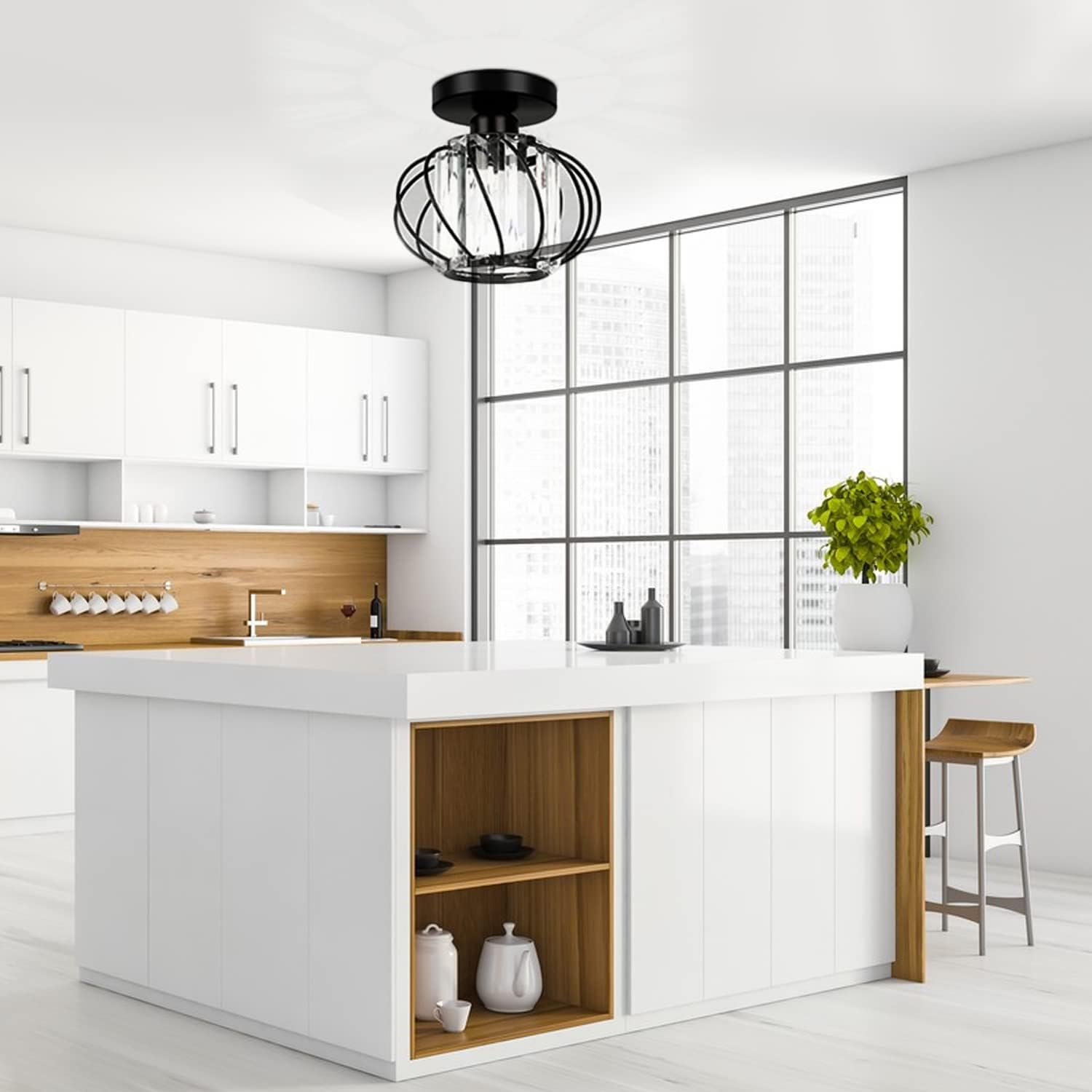 Mini Semi Flush Mount Elevate your interior with the Masroo Modern Crystal Ceiling Light Fixture, a perfect blend of modern elegance and industrial charm. Designed to create a stunning visual appeal, this mini semi-flush mount chandelier features sparkling crystal accents and a compact design that fits seamlessly in kitchens, hallways, dining rooms, and living spaces. Its LED lighting provides energy-efficient illumination while adding a touch of glamour to any room.